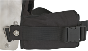 Besteht aus zwei Taschen, die über den Bauchgurt geschoben und mit der Backplate verschraubt werden.