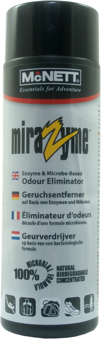 MiraZymeâ„¢ Geruchsentferner ist eine leistungsstarke Mischung natürlicher Enzyme und Mikroorganismen zur Entfernung von Gerüchen, die durch Moder, Schimmel oder Bakterien verursacht werden. McNett hat eine einzigartige Mischung von 10 natürlich vorkommenden und stark angepassten Enzymen, Mikroorganismen und anderen organischen Bestandteilen entwickelt, die die Quelle von Gerüchen erkennen und entfernen.