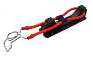 XS Scuba Flaschenhalter, kann mit weiteren Einheiten verbunden werden, das Gummiband lässt sich auf beiden Seiten ein-/aushängen..